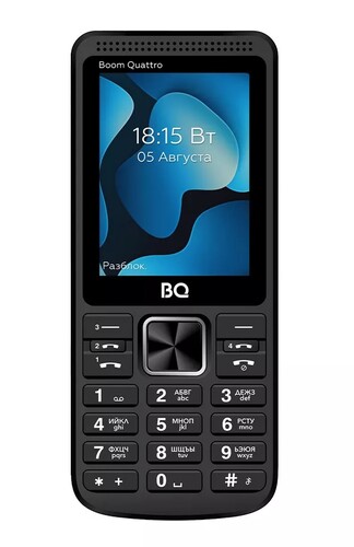 Четырехсимочный сотовый телефон BQ 2455 Boom Quattro с базовым набором функций и емким аккумулятором емкостью 2700 мАч позволит долгое время находится без подзарядки.
