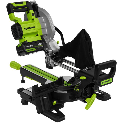 Торцовочная пила Greenworks GD24MS216 24V 1501707 (216x30 мм) с протяжкой бесщеточная аккумуляторная — пила из серии 24V для распила древесины. Имеет диск 216 х 30 мм с максимальной толщиной зубьев 2,4 мм. Оснащена бесщеточным двигателем, блокировкой шпинделя и регулировкой глубины реза.