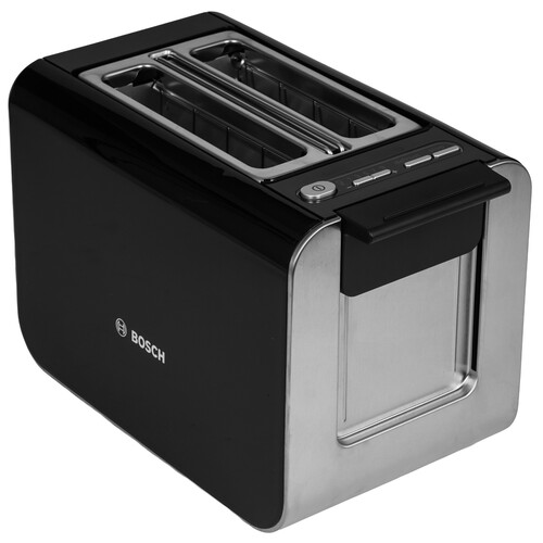 Тостер Bosch TAT8613 выполнен в классическом черном цвете. Эта модель с двумя слотами для поджаривания позволяет одновременно готовить два тоста, что экономит время. Кварцевый нагревательный элемент MirrorHeating защищен от внешних воздействий и обеспечивает эффективный теплообмен. Термоизолированный корпус предотвращает случайные ожоги. Прибор изготовлен из нержавеющей стали повышенной прочности и оснащен простыми клавишными переключателями для удобного управления. Тостер имеет индикацию режимов работы и возможность регулировки степени поджаривания хлеба. Устройство также оснащено функциями плавного подъема, отключения при застревании, подогрева и размораживания. Автоматическое центрирование обеспечивает равномерную прожарку каждого кусочка.