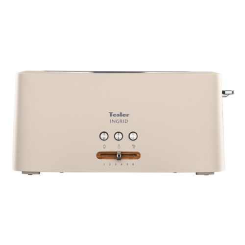 Тостер TESLER TT-140 мощностью 980 Вт с одним слотом для двух тостов оснащен шестью степенями обжаривания, функциями размораживания, подогрева и экстренной отмены. Прорезиненные ножки не дают устройству скользить по столу. В нише снизу есть скрытый отсек для хранения кабеля.