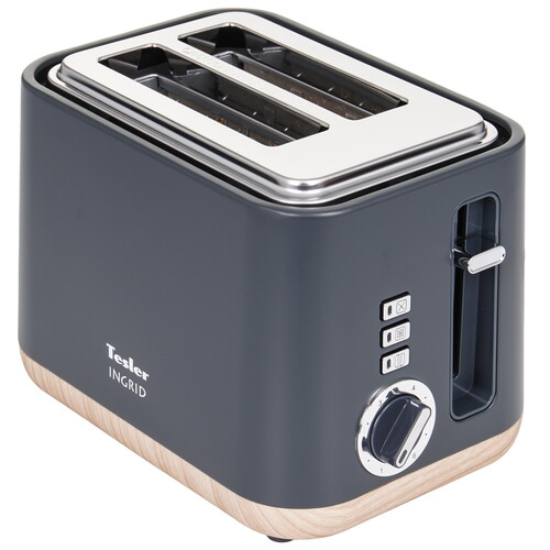 Тостер Tesler TT-244 серый представлен в комбинированном корпусе из металла и пластика. Нержавеющая сталь устойчива к царапинам и перепадам температур. Она не выгорает на солнце, легко очищается от загрязнений и следов от пальцев. Мощность тостера Tesler TT-244 составляет 815 Вт. Она обеспечивает равномерное поджаривание ломтиков хлеба – они становится хрустящим снаружи и остаются мягким внутри. Равномерное распределение тепла по нагревательным элементам позволяет добиться золотистой корочки по всей поверхности тоста. Tesler TT-24 оснащен двумя слотами для хлеба. Автоматическое центрирование гарантирует равномерную прожарку просто с обеих сторон, без пересушенных краев и сырой середины. По готовности тосты поднимаются вверх – их можно достать без риска ожогов. У модели шесть уровней обжарки. На режиме разморозки хлеб автоматически оттаивает, а затем сразу поджаривается. Также в тостере можно подогреть уже обжаренные ранее ломтики хлеба. Кнопка «Стоп» мгновенно останавливает работу устройства. Поддон у тостера съемный – его можно легко вытащить и стряхнуть крошки. Прорезиненные ножки обеспечивают устойчивость модели. Когда тостер не используется, шнур можно убрать в специальный отсек для на корпусе.