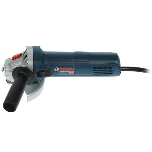 Машинка углошлифовальная Bosch GWS 9-125 предназначена для резки, обдирки и крацевания металлических и каменных материалов, не используя при работе воду. Максимальный размер диска, который используется в данной модели инструмента – 125 мм. Потребляемая мощность равна 900 Вт, благодаря щеточному типу двигателя. Максимальная частота оборотов диска прибора на холостом ходу – 11000 об/мин. Диаметр посадочного отверстия составляет 22.2 мм. Регулировка оборотов отсутствует. Положение рукояти имеет два крепления (двухпозиционный формат позволяет настроить прибор под свою эргономику). Инструмент использует для работы питание от сети. Ограничение пускового тока отсутствует. Для легкой смены диска присутствует фиксация шпинделя. Для предотвращения быстрого износа и выхода из строя прибора имеется защита от перегрузок. В комплекте с углошлифовальной машинкой дополнительно поставляется ключ для смены диска, дополнительная рукоять.