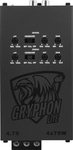 Gryphon Lite 4.70 - сверхкомпактный и при этом стабильный четырехканальный усилитель с чистым звучанием. Возможность подключения напрямую к штатной автомагнитоле, а также коммутации с помощью всего одной пары RCA.