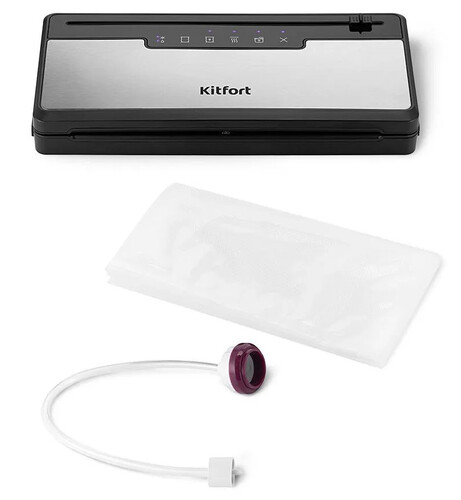 Вакууматор — устройство для вакуумной упаковки продуктов. Вакуумирование позволяет защитить от пыли, грязи, сохранить аромат и продлить срок годности пищевых продуктов. Кнопка «Авто» включает автоматическую упаковку продукта. Нажатие на кнопку «Режим» циклически переключает два режима упаковки: «Сухой» и «Влажный». Кнопка «Контейнер» предназначена для выбора вакуумирования продуктов в специальных контейнерах.
