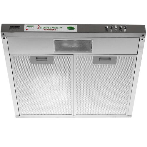 Вытяжка подвесная KRONAsteel Jessica slim PB 500 inox выполнена в сером корпусе из металла и является важным устройством для кухонного помещения. Обладая производительностью 403 м³/ч, вытяжка способна очень быстро справиться с выведением воздуха, который был загрязнен испарениями, сильными запахами, исходящими от пищи. Благодаря поддержке режима "Циркуляция" на место загрязненного воздуха будет поступать свежий, что позволит находиться в помещении такое количество времени, сколько понадобится для завершения процесса готовки. KRONAsteel Jessica slim PB 500 inox – это пристенная вытяжка шириной 49.7 см, которая обладает мощностью 100 Вт. Модель поддерживает три скорости работы, для настройки которой используются кнопки. С их помощью вы сможете включить освещение рабочей области под вытяжкой: для освещения используется лампа накаливания. Прибор использует жировой фильтр, чтобы не допустить загрязнения мотора в результате проникновения загрязнений в воздуховод.