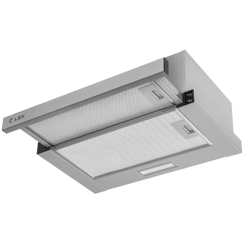 Компактная и тихая вытяжка LEX HIDE 500 — прекрасное решение для небольшой кухни. У модели высокая мощность, простое управление, комфортная для глаз подсветка. С помощью выдвижной каретки можно быстро увеличить площадь поглощения запахов и пара. Вытяжка встраивается в шкаф шириной 50 см, на виду остается только узкая панель, поэтому эта модель идеально впишется в любой интерьер. Устройство можно подключить к вентиляции или установить на мотор угольные фильтры для работы вытяжки в режиме рециркуляции.